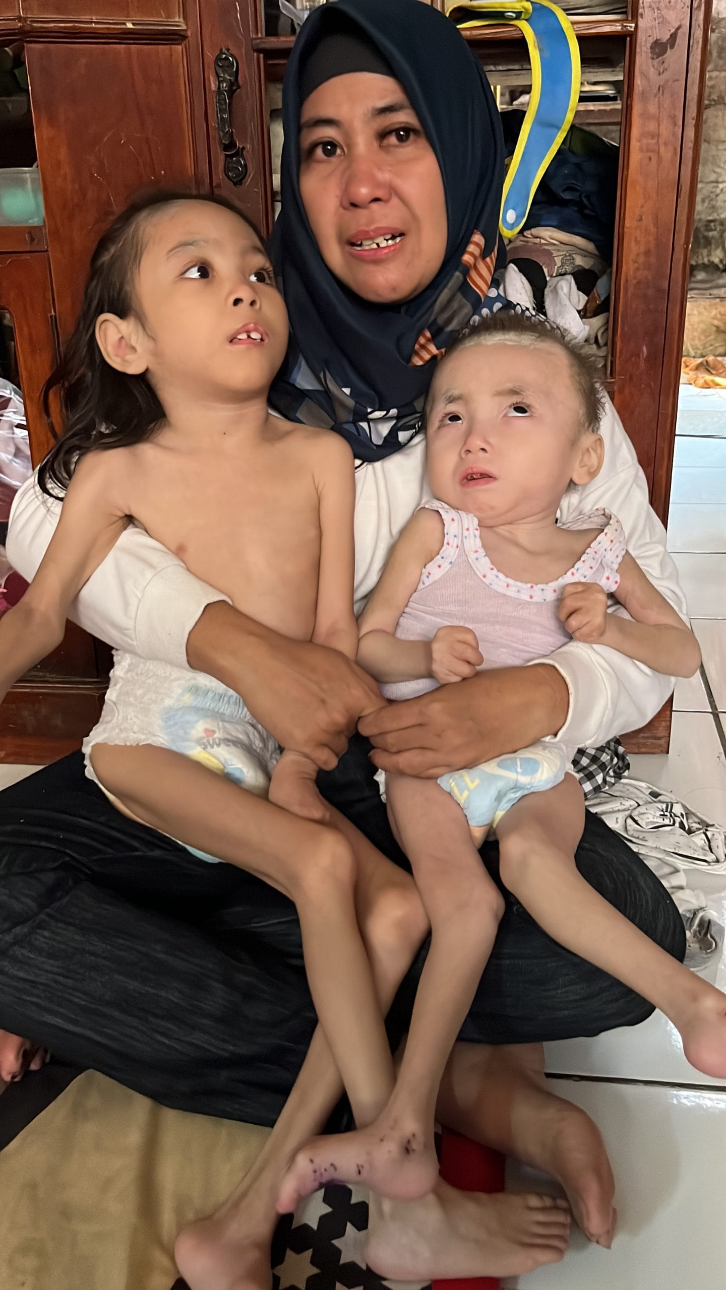 Beliau bekerja keras demi menghidupi kedua anak disabilitasnya selama ini yang menderita cerebral palsy,kelumpuhan,syndrome mermaid dan seabrek penyakit lainnya.