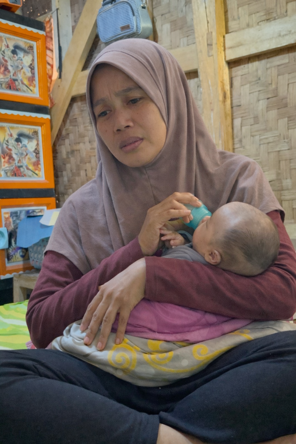 Sang ibu harus dengan sangat hati-hati ketika menggendong, karena takut melukai bagian perutnya yang sensitif.